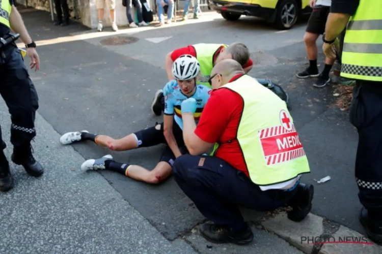 Zo ging Jessy Druyts hard tegen de vlakte. De 23-jarige renster bloedde aan het gezicht en moest opgeven. Ook Kelly Van den Steen ging twee keer tegen het asfalt.