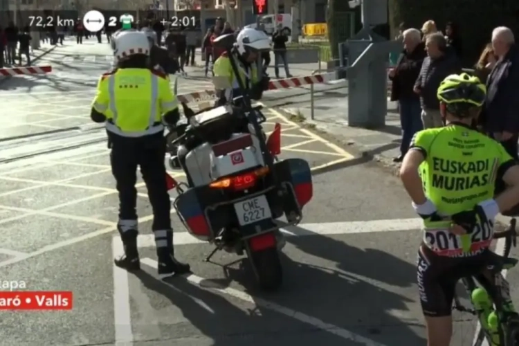 In de Ronde van Catalonië kregen we een opmerkelijk zicht. De kopgroep, met naast Andriy Grivko drie Spanjaarden, moest wachten voor een overweg.