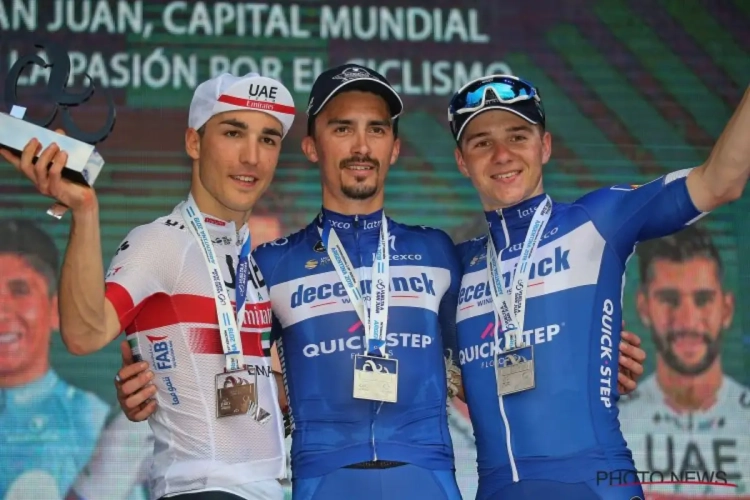 Het seizoen is amper goed en wel op gang gekomen of Julian Alaphilippe heeft al twee overwinningen achter zijn naam staan. De Fransman toonde in de Ronde van San Juan ook wat hij kan in een tijdrit. Na afloop stond hij samen op het podium met Evenepoel, die hem de nodige info had gegeven.