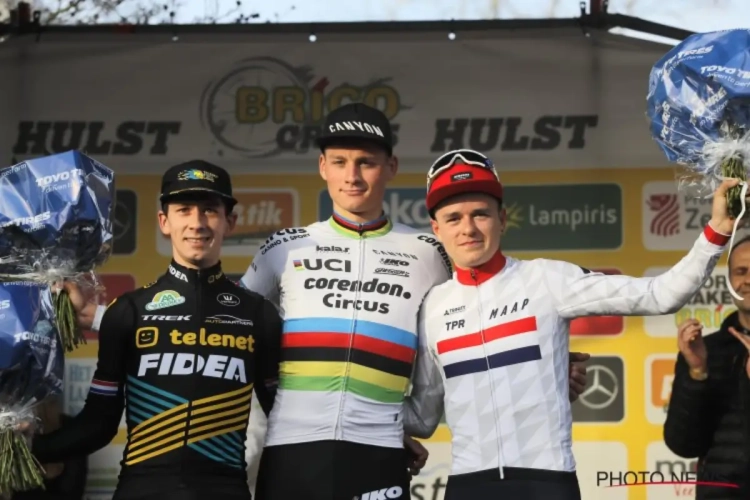 Mathieu van der Poel, Lars van der Haar en Tom Pidcock namen de drie podiumplaatsen in Hulst in beslag. Daarmee komt er een einde aan een waanzinnige reeks van 1879 dagen waarin na elke tv-cross minstens één Belg op het podium stond, merkten onze collega's van WielerFlits op. Door de dominantie van Mathieu van der Poel nam ons landje dit seizoen enkel de Wereldbeker mee naar huis.