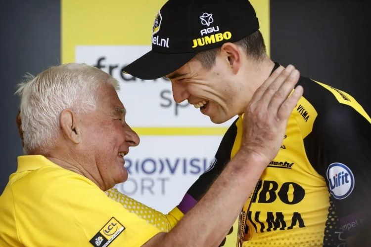 Poulidor gaf de grote veldritrivaal van zijn kleinzoon een welgemeende knuffel na zijn sprintzege in de Tour. De Fransman was dan ook blij voor Van Aert. "Ik ken hem al een tijdje, natuurlijk", klinkt het in HLN. "Ik heb Wout al veel aan het werk gezien. Doorgaans in de modder, soms zelfs in de sneeuw. Dan is dit toch nog wat anders."