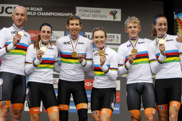 Zondag stond voor het eerst in de geschiedenis van het WK een gemengde ploegentijdrit op het programma. De Nederlanders behaalden de eerste wereldtitel. Opmerkelijk: Het zestal zal met deze zege meer verdienen dan de winnaar van het WK op de weg van komende zondag.