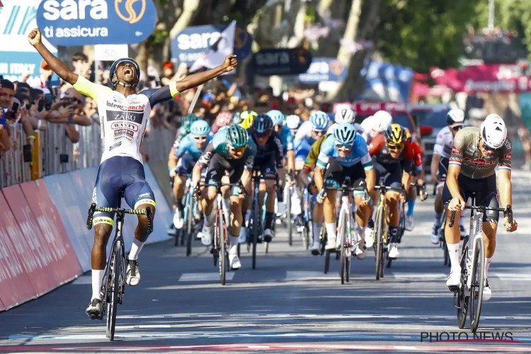 Girmay haalde het in de sprint van de tiende etappe in de Giro van Mathieu van der Poel. Een nieuw moment van geschiedenis schrijven voor de Eritreeër.