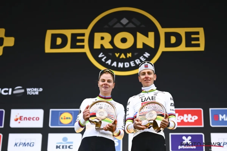 Lotte Kopecky is een mooie foto rijker, want net als Tadej Pogacar won ze de Ronde van Vlaanderen in de regenboogtrui. Het is vooral een bewijs van haar mentale sterkte, na de moeizame Dwars door Vlaanderen van afgelopen woensdag.