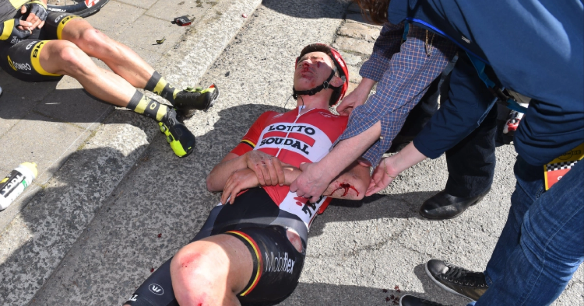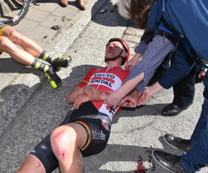 "Voor alle duidelijkheid: daar is absoluut geen sprake van", benadrukt de ploegmanager. "Hij moet nu de tijd nemen om te herstellen van de klap en de pijn. Maar het lijkt erop dat hij er alles aan wil doen om toch te kunnen starten in Parijs-Roubaix."