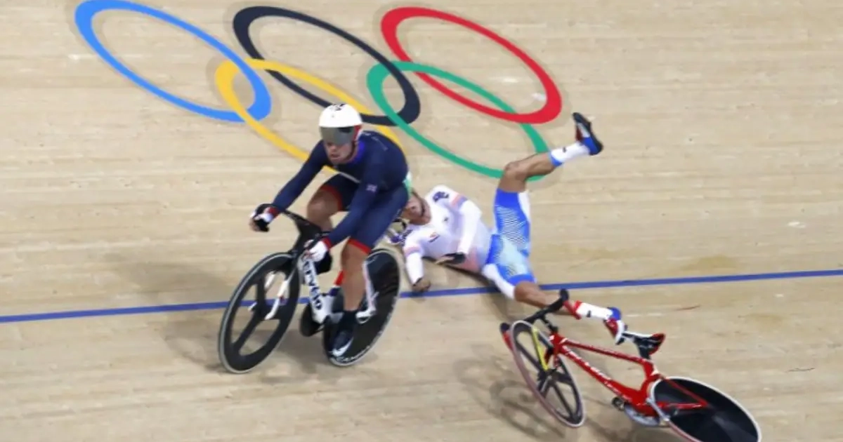 Mark Cavendish liep gisteren weg bij NOS-collega Thijs Zonneveld toen die hem naar zijn vreemde manoeuvre in het baanwielrennen vroeg. Hij reed de Koreaan Park van de sokken waardoor ook Viviani tegen het hout smakte. Onverantwoord.