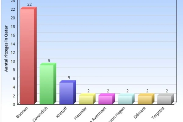 Tom Boonen is 'Mister Qatar', dat maakten we al eerder duidelijk. Naast enkele eindzeges valt vooral op dat hij alles samen goed was voor niet minder dan 22 overwinningen.