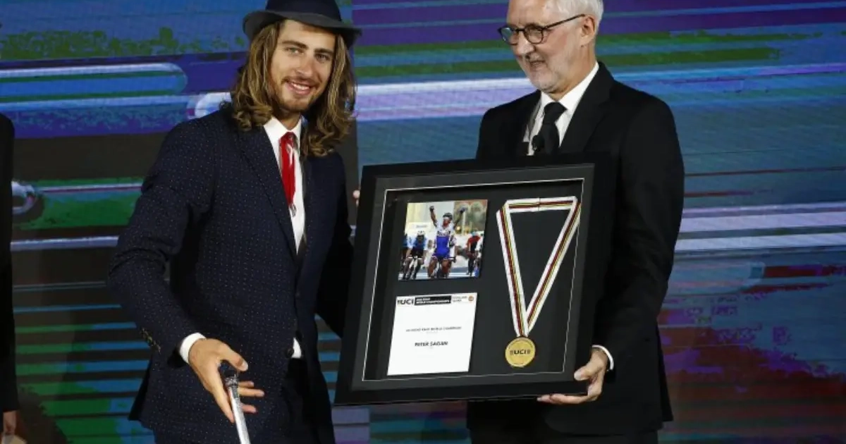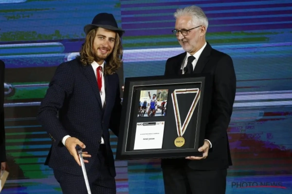Peter Sagan heeft een heel jaar lang de nodige show verkocht en ons verwend met zijn mooie overwinningen. Maar na zijn wereldtitel van vorige zondag, deed hij er op het galabal van de UCI nog een schepje bovenop.