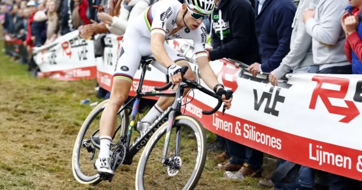 Wout Van Aert moest de duimen leggen tegen Mathieu Van der Poel in de Superprestige van Ruddervoorde. Vooral een fietswissel op een slecht moment bezegelde zijn lot.