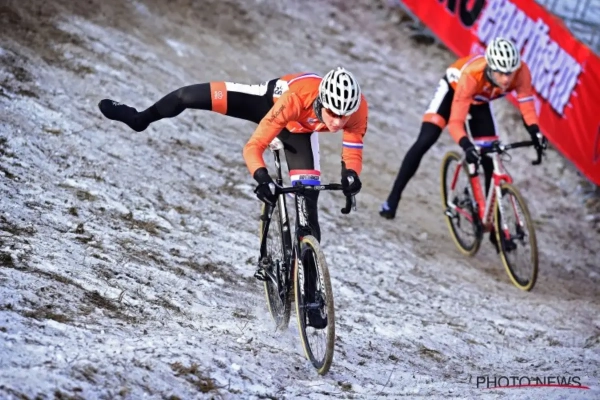 Topfavoriet Van der Poel laat het niet aan z'n hart komen. "Ach, het is een leuk rondje", zei de 22-jarige Nederlander op het persmoment in Bieles. "En de sneeuw is inderdaad in mijn voordeel. Maar zondag kan het parcours er al heel anders uitzien. En wat Van Aert betreft: wees gerust, die gaat zondag klaar zijn voor een sterke wedstrijd."