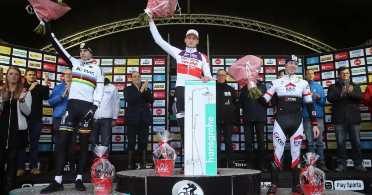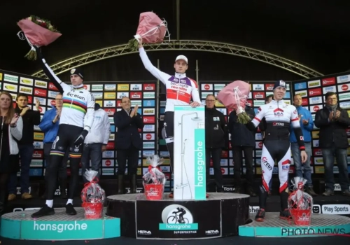 In de Superprestige heeft de Nederlander dan weer al heel wat douchesets gewonnen. "Die doos krijg je niet mee, maar je mag dat achteraf gaan ophalen bij Hansgrohe. Ik heb denk ik nu al 11 of 12 douchekoppen", lacht van der Poel.