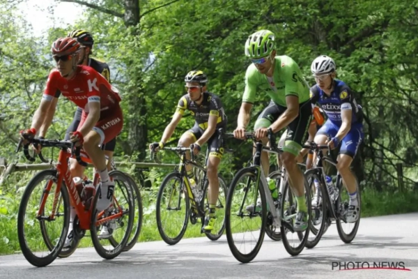Het was toch even schrikken vanmiddag in de Tirreno Adriatico. Katjoeisja-renner Mamykin gleed van de weg en kon maar net een drama voorkomen.