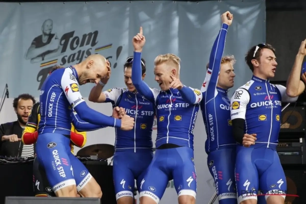 Na zijn afscheidskoers mochten alle ploegmaats en nog enkele andere bekenden zoals Peter Sagan en Maarten Wynants mee het podium op. En toen was het tijd voor een feestje met de Nederlander Jebroer, die zijn monsterhit 'Kind van de duivel' kwam zingen.