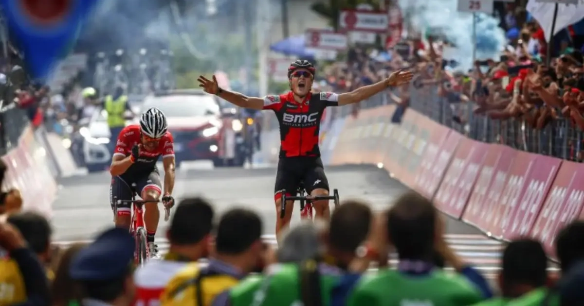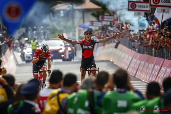Jasper Stuyven kwam gisteren tot op 80 centimeter van ritwinst én de puntentrui in de Ronde van Italië. Silvan Dillier was net iets te snel, het leverde een welgemeende vloek op.