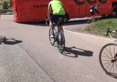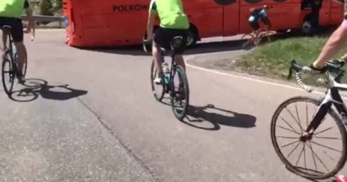Dat mocht het Poolse CCC aan den lijve ondervinden. Toen de bus een afdaling wou inzetten, reed de chauffeur iets teveel naar het midden van de bocht. Met het gevolg dat de bus helemaal vast bleek te zitten.