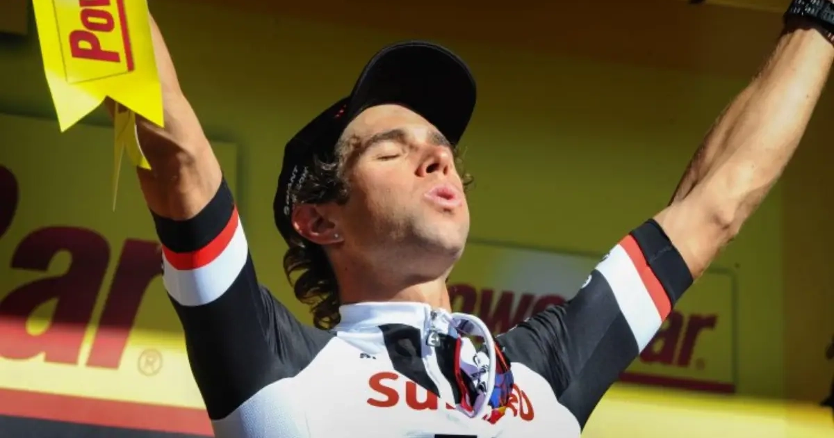 Niet Greg Van Avermaet, maar wel deze Michael Matthews won de rit naar Rodez. Hij knalde in de laatste honderden meters los voorbij de Olympische kampioen.