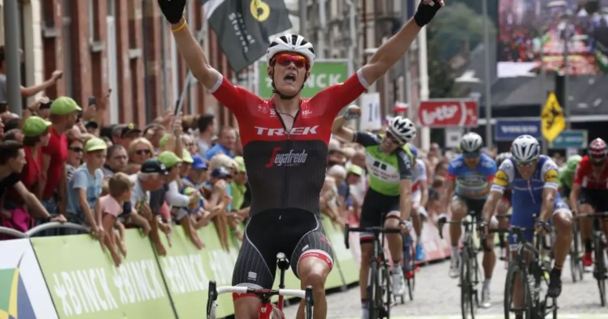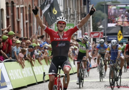 Winnaar van de slotrit Jasper Stuyven reageert na knappe zege op de Muur