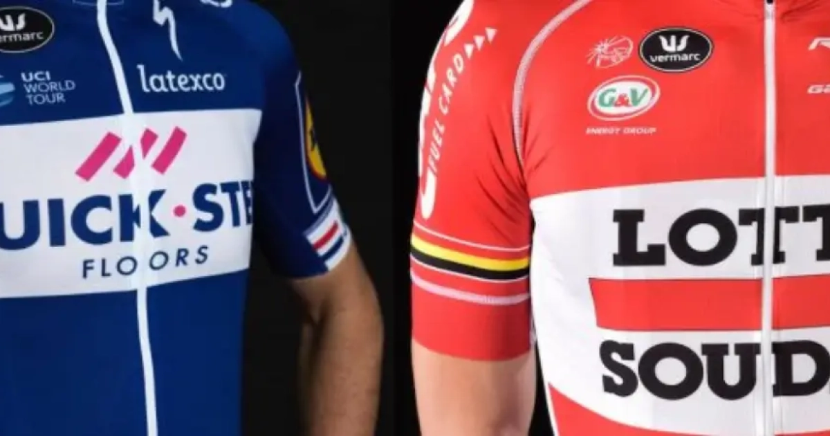 Zoek de tien verschillen: Lotto-renner lacht met Quick-Step om 'gekopieerde shirts'