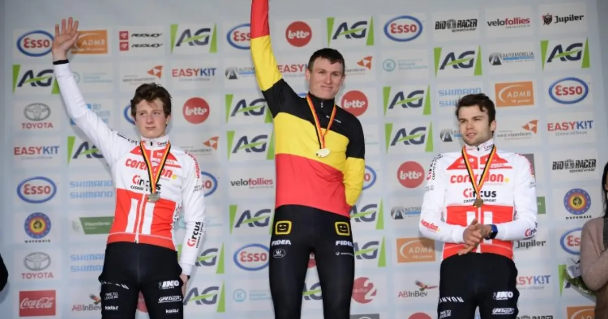 Thijs Aerts kroonde zich zondagmiddag tot Belgisch veldritkampioen bij de beloften. De jongere broer van Toon Aerts troefde Toon Vandebosch en Stijn Caluwé af.