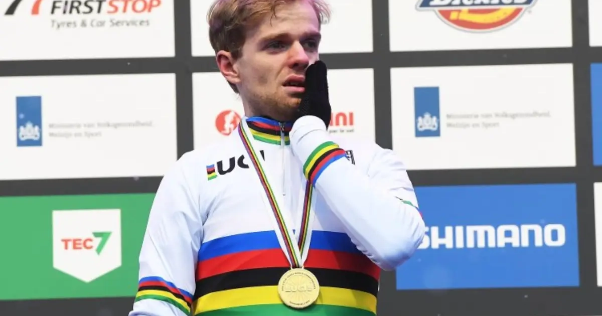 Een tevreden Eli Iserbyt stond de pers te woord na zijn tweede wereldtitel bij de beloften. Met sprekend gemak liet hij de concurrentie achter zich op weg naar een tweede regenboogtrui.