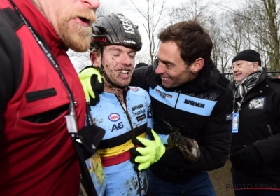 Regenboogman Iserbyt bouwde gisteren samen met 150 fans een feestje in een café in zijn thuishaven Bavikhove. Van zijn lief Puck Moonen, die bij Lotto Soudal zelf ook aan haar wielercarrière timmert, echter geen spoor. Zij vertoeft momenteel in het Spaanse Benicasim op stage: "Het regende daar zondag in de voormiddag dus heeft Puck mijn race toch kunnen volgen", klinkt het in 'Het Nieuwsblad'.