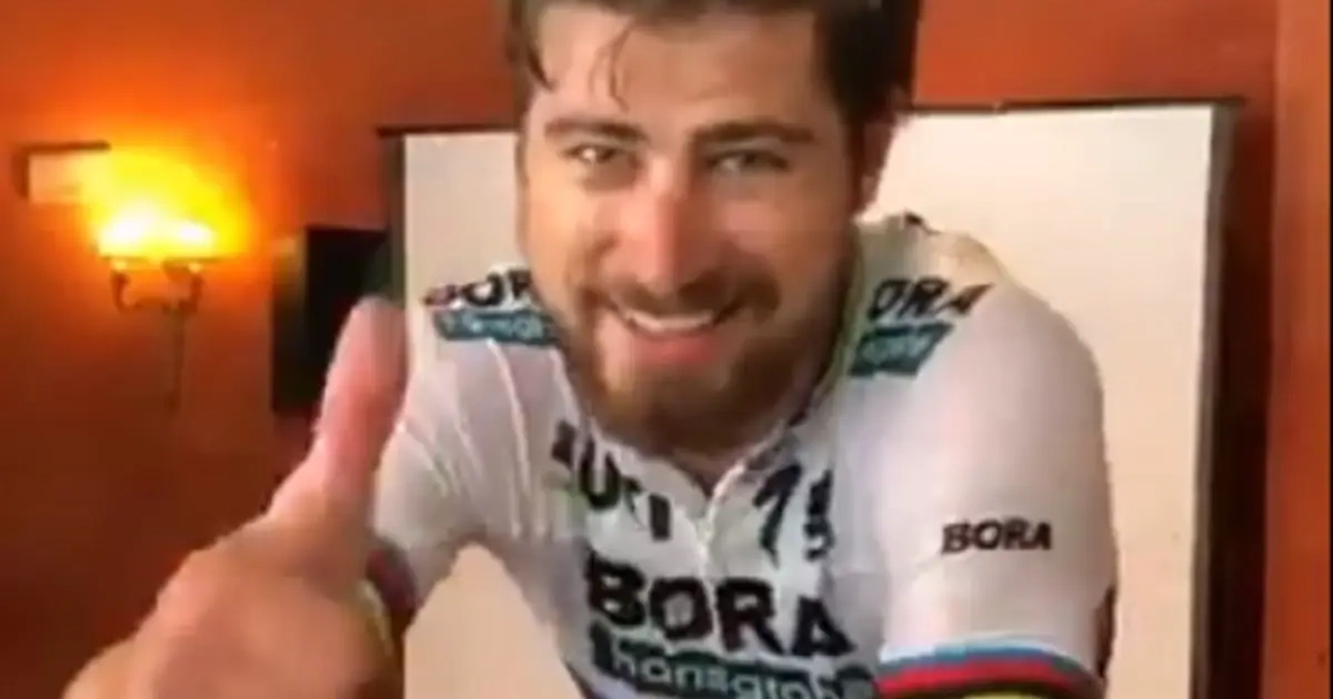 De renners die morgen hun kans wagen in de Strade Bianche moeten door het hallucinante winterweer bijzonder inventief zijn in hun voorbereiding. Zo ook Peter Sagan, die zich genoodzaakt zag om binnen te trainen. Maar dat gegeven tastte zijn humeur allerminst aan.