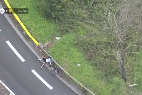 Update 18.10 uur: Wout Poels heeft zijn linkersleutelbeen gebroken bij de valpartij. Verre van ideaal voor de Nederlander, die in de Giro één van de kopmannen van Team Sky wordt.