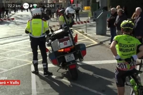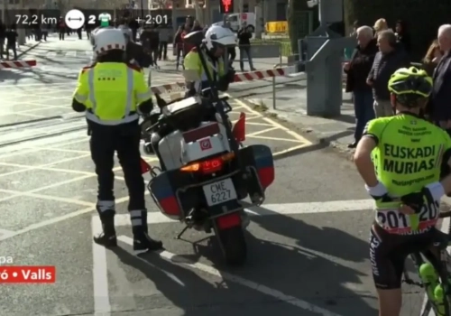 ? Hectiek in de Ronde van Catalonië: kopgroep stopt voor overweg, dus stopt peloton ook