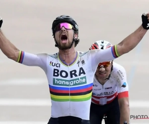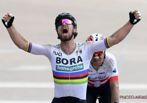 Een leuk extraatje: Sagan is de eerste renner die Parijs-Roubaix wint in de regenboogtrui. "Dat is erg mooi. Ik doe altijd mijn best", reageerde hij nog.