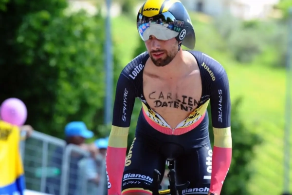 "Al geldt dat natuurlijk ook voor Tom Dumoulin. De openingstijdrit in Jeruzalem kent een golvend parcours, maar gaat wel over mooie wegen en de bochten zijn niet al te technisch." De favoriet van Campenaerts of beter gezegd zijn grootste uitdager: "Volgens mij wordt Rohan Dennis de taaiste tegenstander voor de dagzege."
