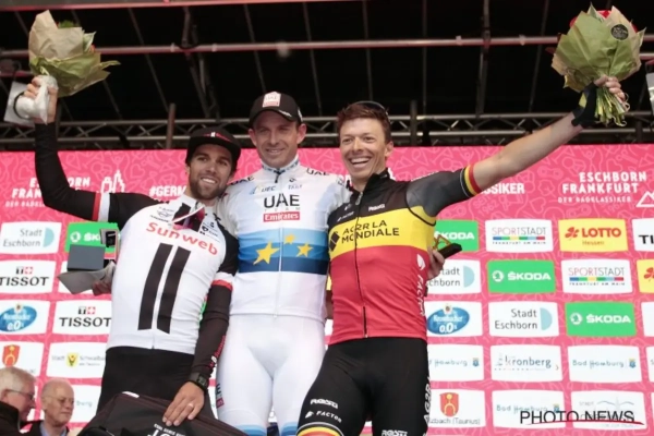 "Dat ik meteen op het podium sta, is een leuke verrassing", aldus Naesen aan Sporza. "Voor het eerst sinds mijn klassieke campagne stond ik aan de start van een koers. Frankfurt was dus zeker geen doel op zich. Erger nog, ik had onderweg de slechtste benen die ik dit jaar al gevoeld heb. En toch sta ik op het podium."