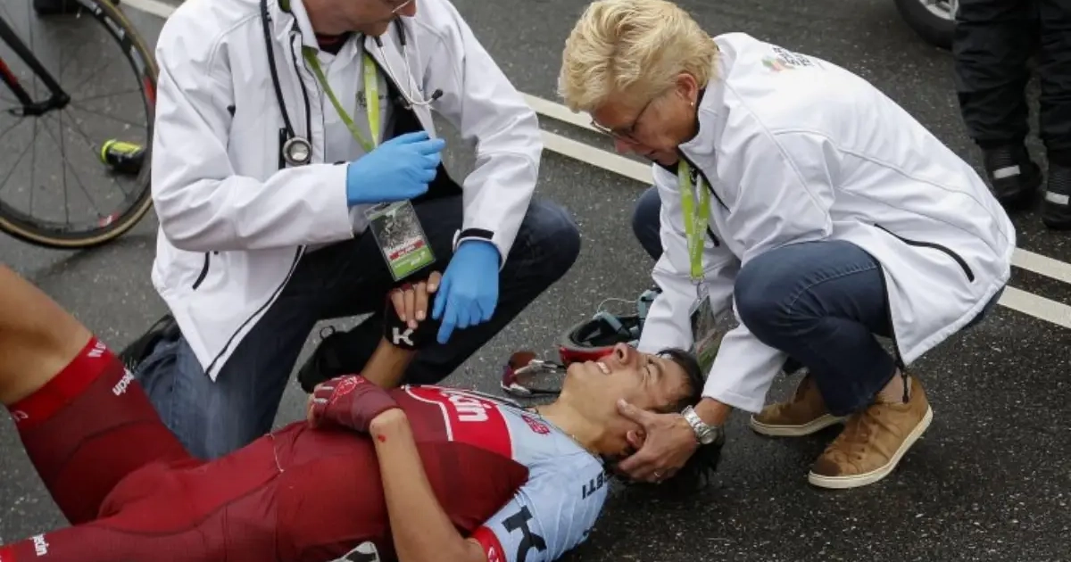 De Rus liep verscheidende blessures op na een bezoek aan het ziekenhuis. "Spijtig nieuws over Vyacheslav Kuznetsov", klonkt het bij Katusha-Alpecin. "Vyacheslav zal niet meer starten in de tweede rit. De diagnose is een gebroken borstbeen, een hersenschudding en een gekneusde nier."