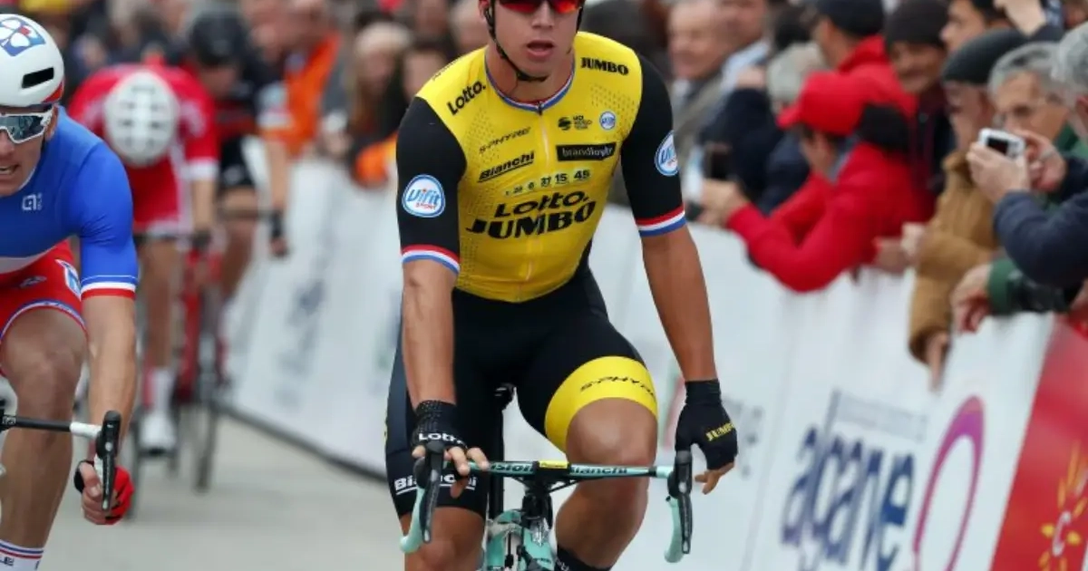 Dylan Groenewegen toont zich de snelste van het pak na spannende sprint in Koolskamp Koers