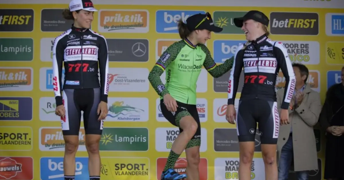 Bij de vrouwen mochten twee renners van Steylaerts-777 naast Marianne Vos plaatsnemen op het podium. Alice Arzuffi werd tweede, Annemarie Worst derde.