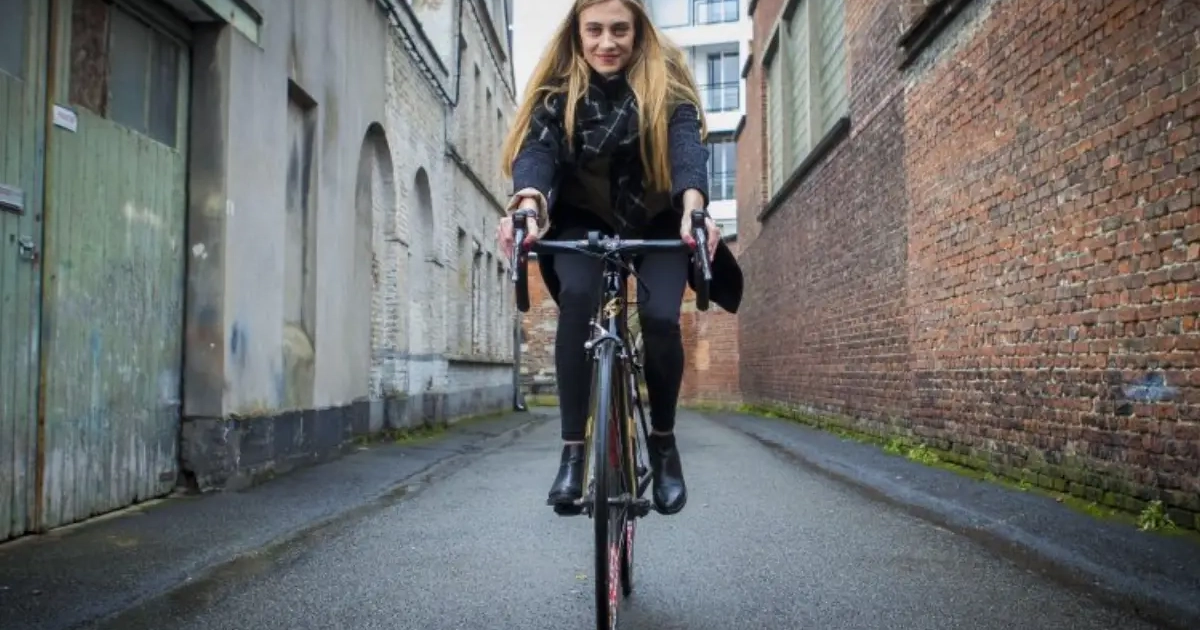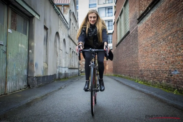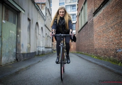 De dochter van VDB nam de uitdaging maar al te graag aan. Zij op haar koersfiets aan de ene kant, draafster Tine Delameilleure en haar paard Coktail aan de andere kant. Het leverde alvast een uniek beeld op voor de toeschouwers.