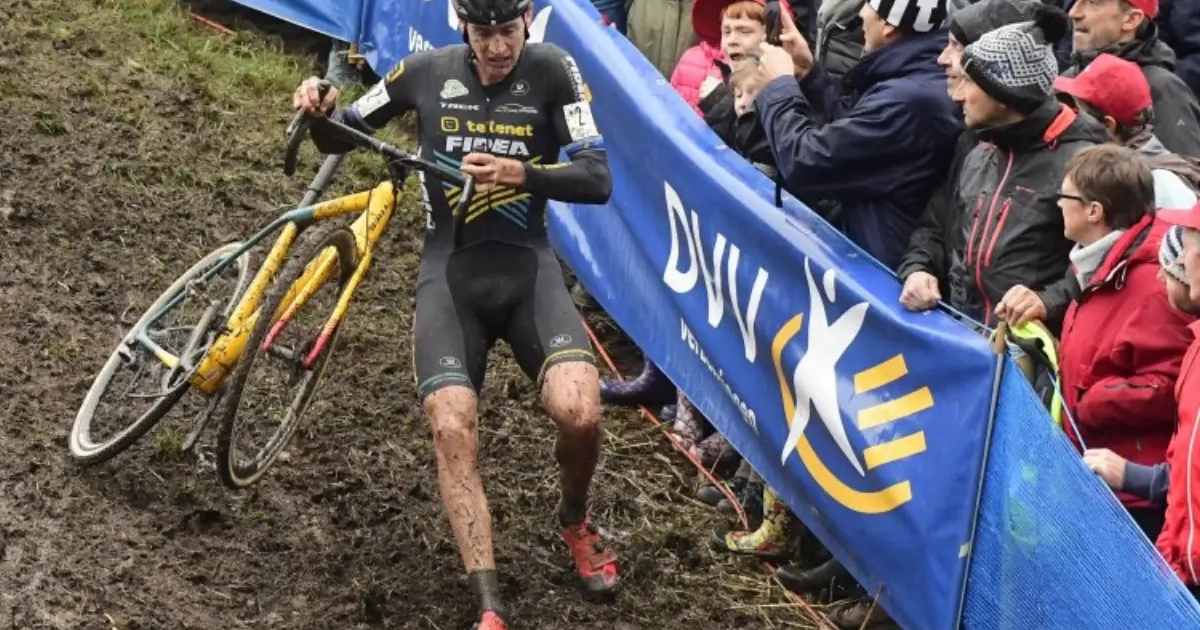 Door de glibberige ondergrond waren er heel wat valpartijen in het Antwerpse Niel. Toon Aerts kwam al in de tweede ronde ten val en zag zo kostbare seconden voor het eindklassement van de DVV Verzekeringen Trofee in rook opgaan. Een ronde later kwamen ook zijn ploegmaat Corné van Kessel en Michael Vanthourenhout ten val.