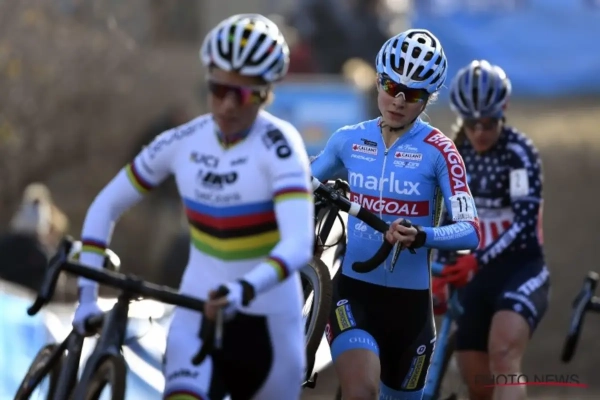 Bij de mannen gaat het er heel anders aan toe door de dominantie van ene Mathieu van der Poel. "Het is heel knap wat Mathieu doet, maar voor de kijkers en fans is het minder fijn. Al is in zijn plaats wachten niet het verstandigste, want je kan altijd wel eens pech hebben", aldus de renster van Marlux-Bingoal.