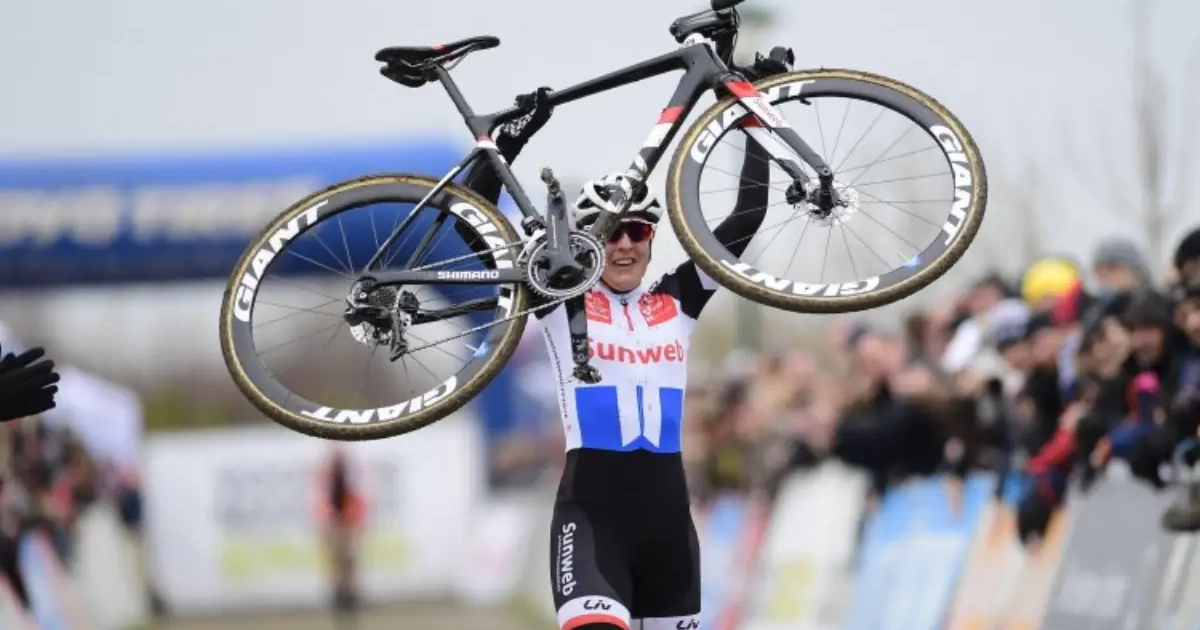 Lucinda Brand was ook in Bredene de sterkste. De Nederlandse haalde het van een sterk bezet deelnemersveld en had zelfs nog de tijd om haar fiets even in de lucht te steken.