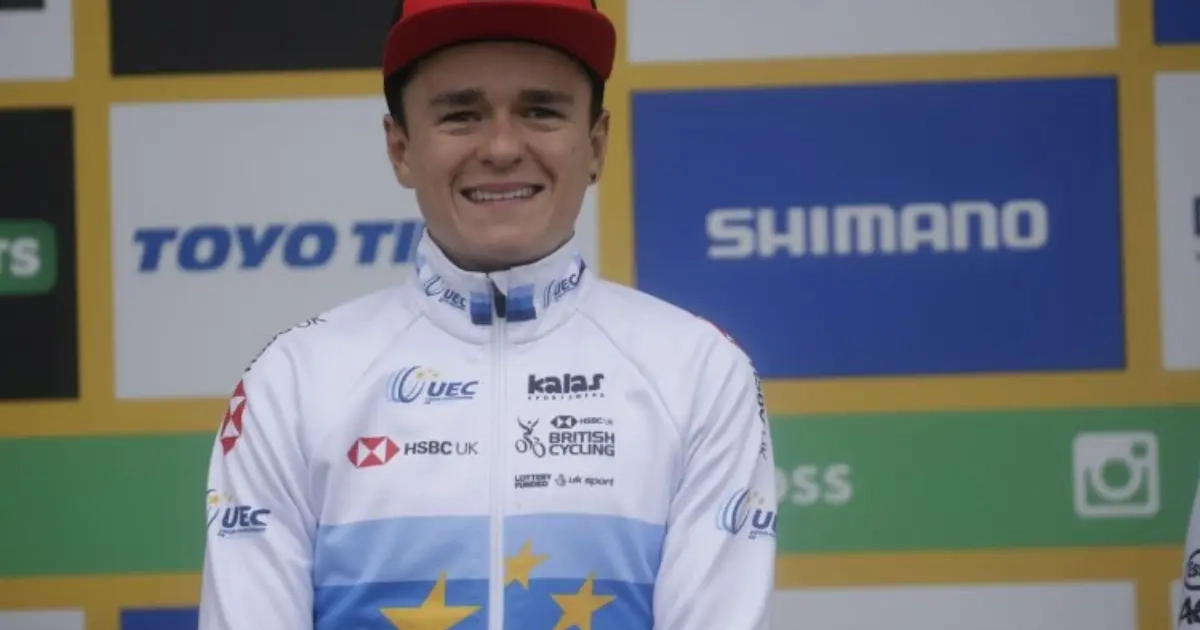 Pidcock pakte uit met een wel heel originele manier om zijn titel te vieren. Op zijn fiets waande de 19-jarige allrounder zich Superman.