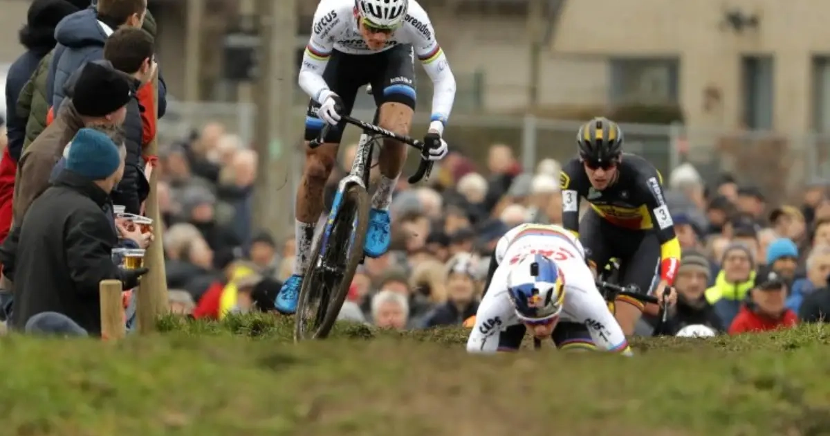 Laurens Sweeck mocht de hoop op een podiumplek al snel in de vuilnisbak gooien. Hij was warempel ergens zijn ketting verloren. Er vormde zich eerst een kopgroep van een tiental renners, maar versnellingen van van Aert en van der Poel gooiden de rest eraf.