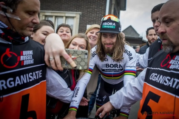 Peter Sagan had nog lange haren toen hij in 2017 Kuurne-Brussel-Kuurne won. Zijn afbeelding staat op de nieuwe affiche van de eendagskoers, net als die van andere ex-winnaars als Tom Boonen en Mark Cavendish. Maar dé ster van de affiche is eigenlijk de overleden karikaturist Nesten.