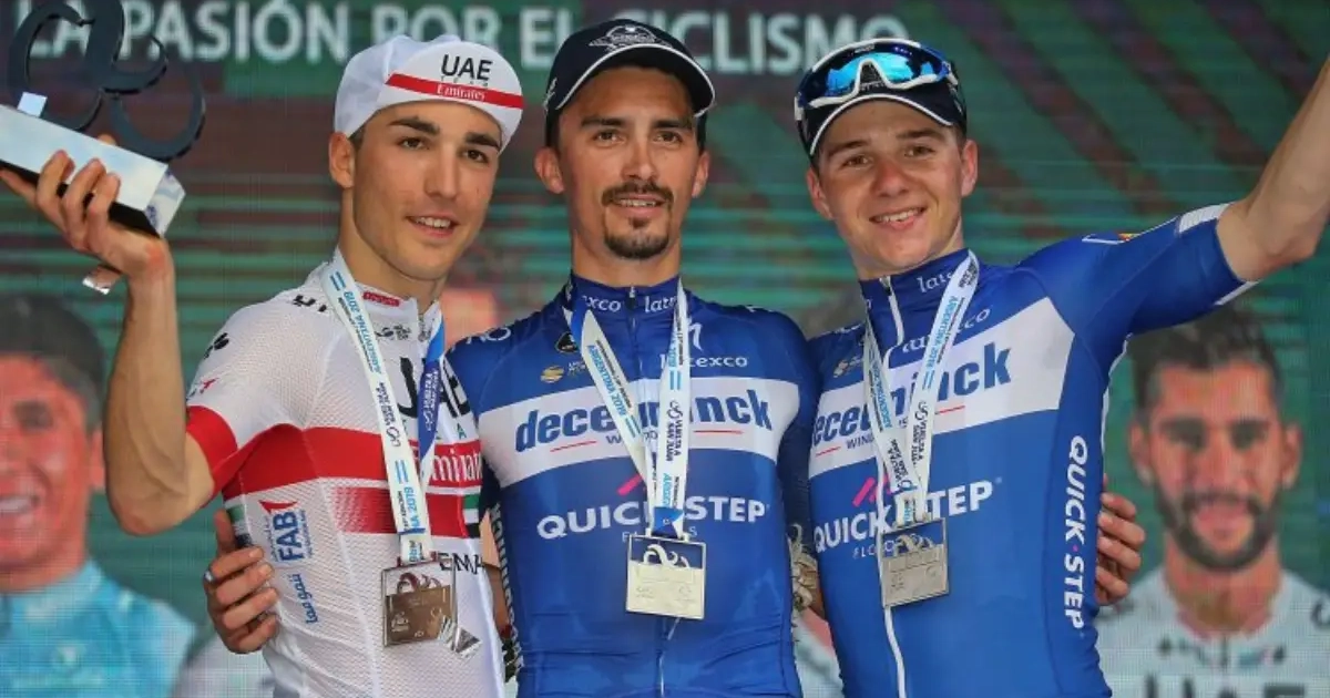 Het seizoen is amper goed en wel op gang gekomen of Julian Alaphilippe heeft al twee overwinningen achter zijn naam staan. De Fransman toonde in de Ronde van San Juan ook wat hij kan in een tijdrit. Na afloop stond hij samen op het podium met Evenepoel, die hem de nodige info had gegeven.