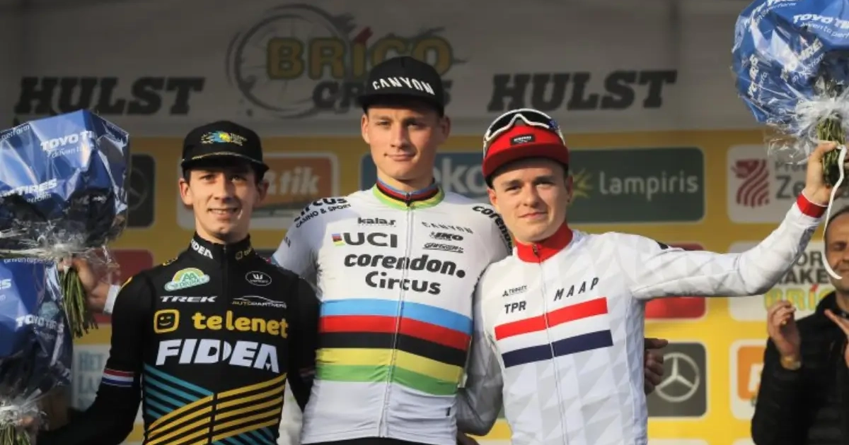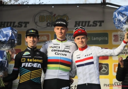 Mathieu van der Poel, Lars van der Haar en Tom Pidcock namen de drie podiumplaatsen in Hulst in beslag. Daarmee komt er een einde aan een waanzinnige reeks van 1879 dagen waarin na elke tv-cross minstens één Belg op het podium stond, merkten onze collega's van WielerFlits op. Door de dominantie van Mathieu van der Poel nam ons landje dit seizoen enkel de Wereldbeker mee naar huis.