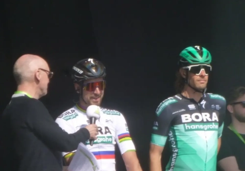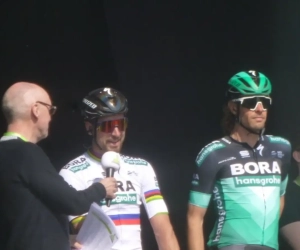 Het plein aan het startpodium op de E3 Arena stond bomvol. Altijd leuk voor de renners en ook voor Peter Sagan, die graag tijd vrijmaakte voor enkele van zijn supporters. "Er is hier veel volk en dat op een vrijdag. Niemand moet hier blijkbaar werken", kreeg de Slovaak het publiek aan het lachen.