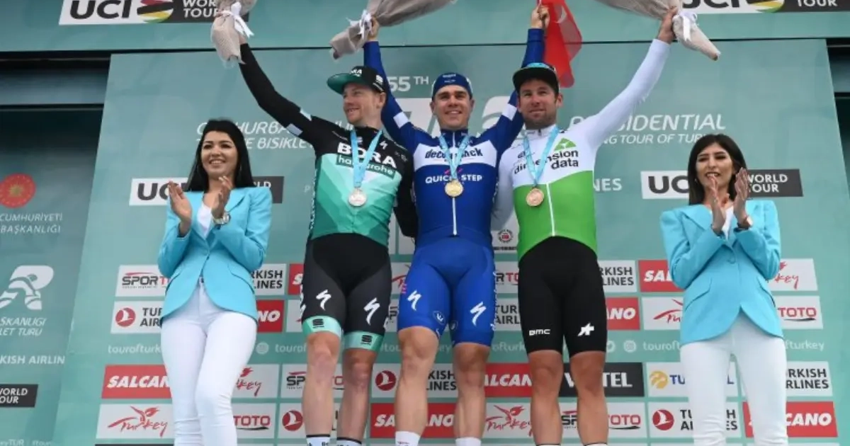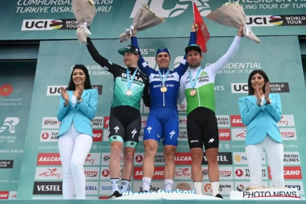 Daar is ie weer, Mark Cavendish. Terug in het land van de levenden als wielrenner. De Brit mocht nog eens deel uitmaken van een podiumceremonie na de derde etappe van de Ronde van Turkije. Het was dan wel voor de derde plaats, maar daar nam Cavendish wel vrede mee.