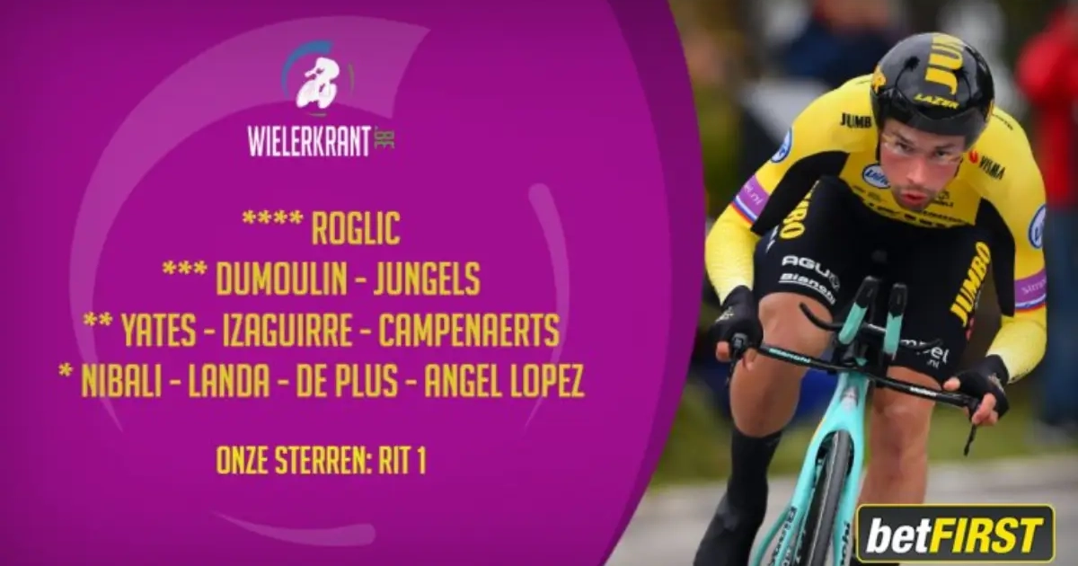 De eerste zes kilometer zijn op het lijf geschreven van Tom Dumoulin, maar met het steile knikje in de laatste twee kilometer lijkt toch vooral Primoz Roglic de te kloppen man.