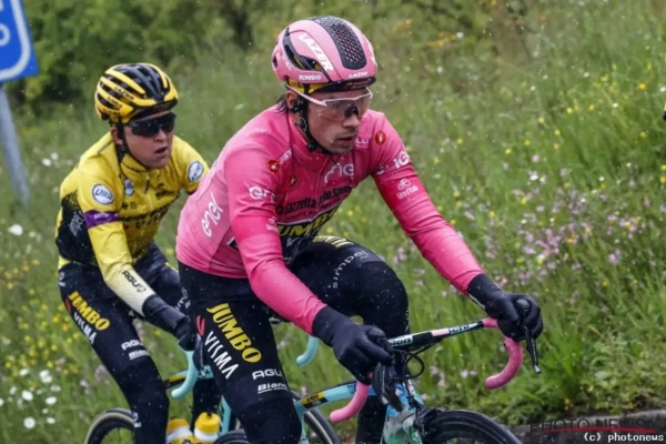 De schade zou al bij al wel meevallen bij de roze trui, want Roglic kon al snel terug aansluiten in het peloton. Al hield de Sloveen er wel een gescheurde broek aan over. Ook zijn ploegmaats Sepp Kuss en Paul Martens kwamen ten val. Gelukkig zonder veel erg.