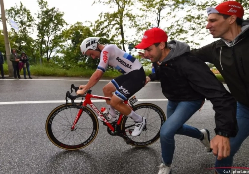 Bittere pil voor Victor Campenaerts. Een nogal klungelige fietswissel - supporters moesten hem weer op gang duwen - verpestte zijn kansen om de tijdrit richting San Marino te winnen. Daar was Campenaerts zich overigens ook al snel van bewust. Hij maakte zich geen illusies.