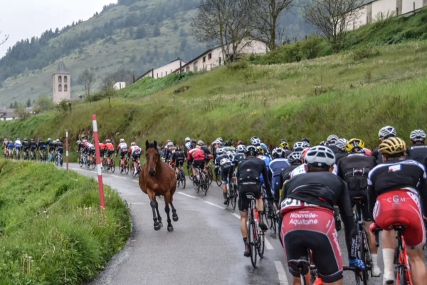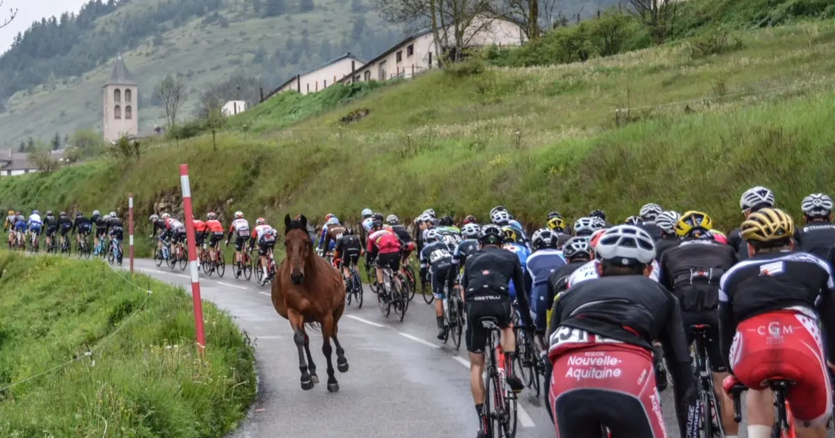 Verschaeve is met zijn ploegmaats van Lotto Soudal U23 aan de slag in de Ronde van de Isard. Maar daar was het opeens opletten geblazen voor een loslopend paard dat in de tegenovergestelde richting rende.