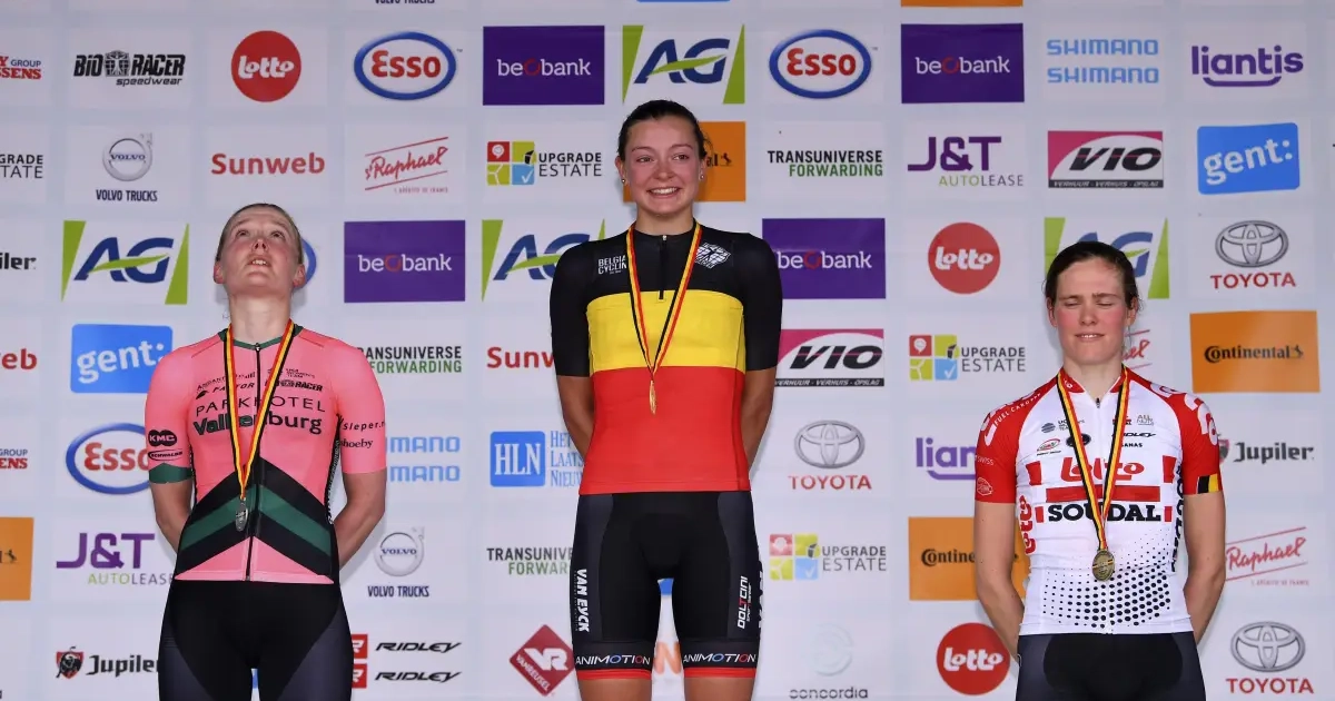 Na haar Belgische titel stond een trotse Jesse Vandenbulcke zondag met haar bijna tweejarig zoontje Fabian op het podium. Jawel, genoemd naar niemand minder dan Spartacus en Fabian Cancellara himself.